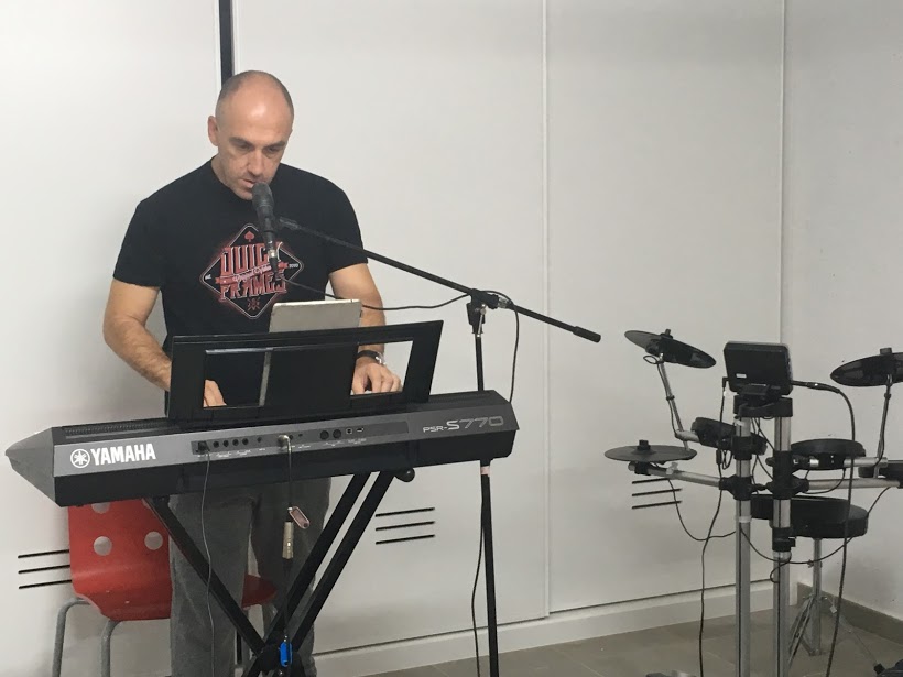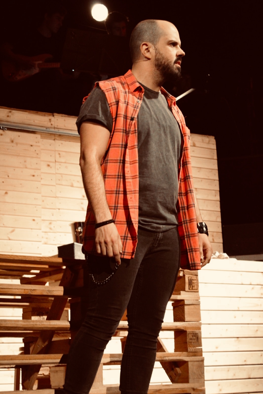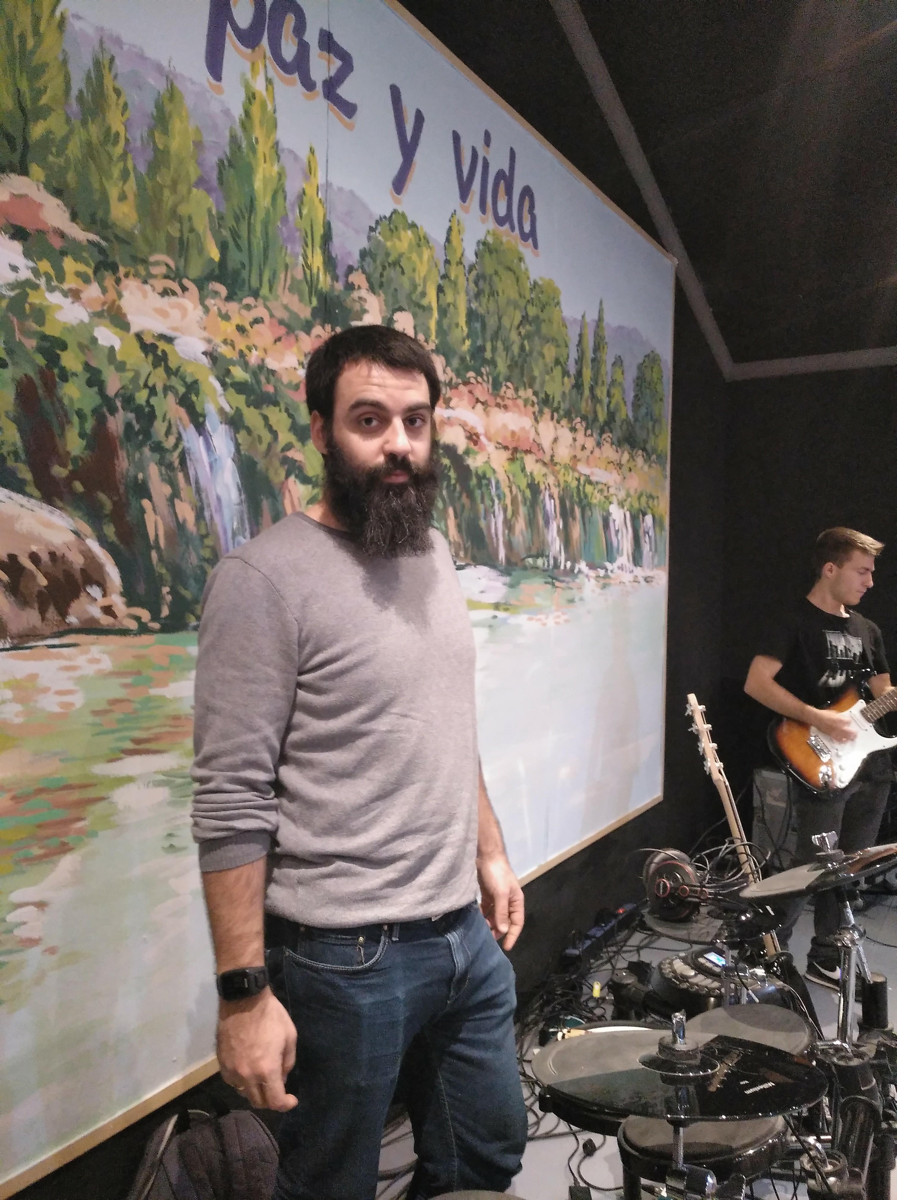 Al bajo Álvaro Montalvo, nosotros le conocemos como Avo. Él había tocado la flauta travesera, el saxo, piano, canto… pero nunca el bajo, instrumento que toca en Vidas de Fuego. Su afán de aprender y de vivir experiencias le llevo a decir un sí rotundo a nuestra llamada. Desde ese día es nuestro bajista preferido.