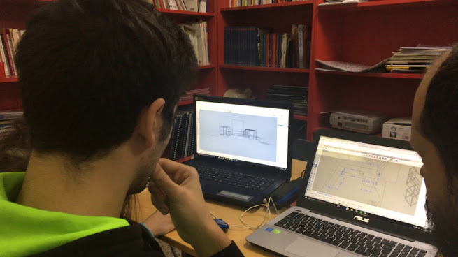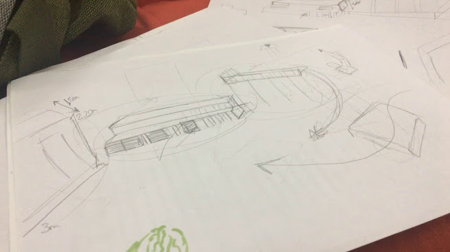 Ana Campos y Javier Carrero, ambos estudiantes de arquitectura, se pudieron manos a la obra con el diseño. El reto estaba en crear en un solo espacio tres espacios muy diferentes. Queríamos enseñar un espacio exterior, un garaje y un bar, el «Buena Vida».