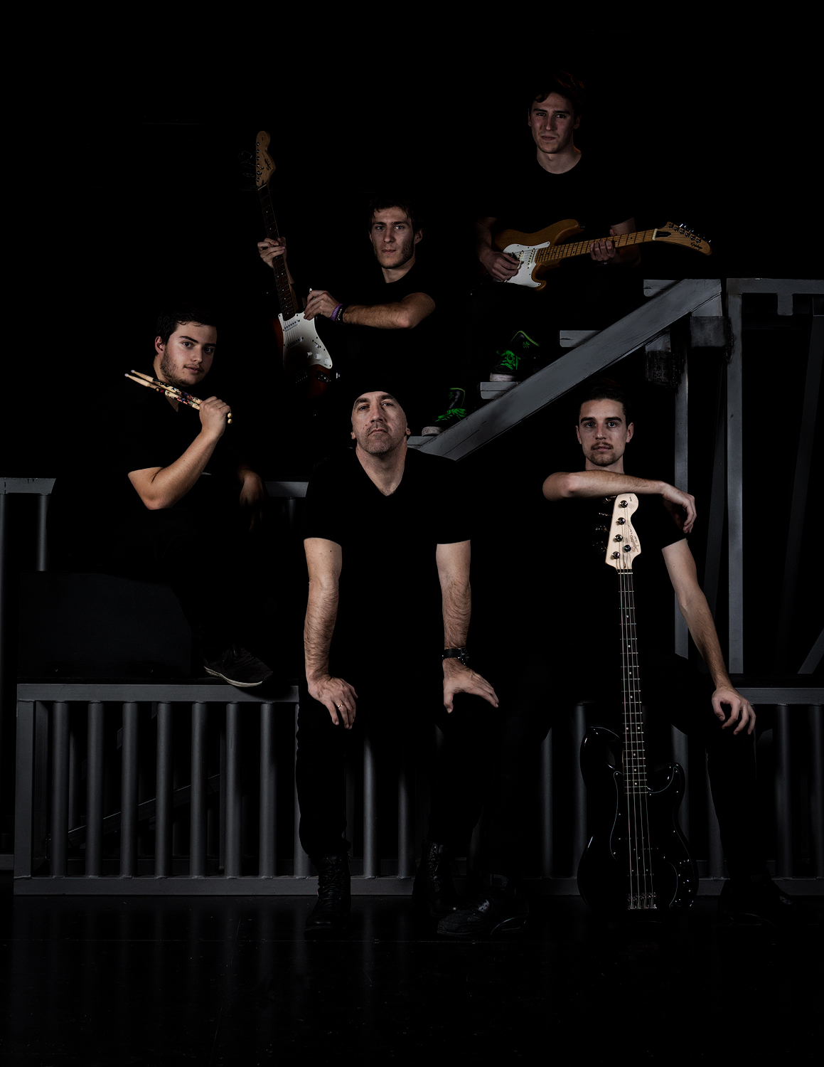 Manu, Marcos, Avo y León, todos ellos a las órdenes de Ricardo Langreo. Ricardo es nuestro director musical, compositor y teclista. Es el pegamento de nuestra banda, nuestra mente creativa.